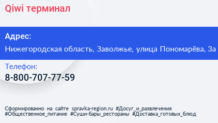 Qiwi, терминал по адресу Нижегородская область, Заволжье, улица Пономарёва, 3а в дальнейшем Организация, размещена в следующих категориях: