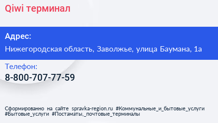 Qiwi, терминал по адресу Нижегородская область, Заволжье, улица Баумана, 1а в дальнейшем Организация, размещена в следующих категориях: