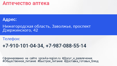 Аптечество, аптека по адресу Нижегородская область, Заволжье, проспект Дзержинского, 42 в дальнейшем Организация, размещена в следующих категориях: