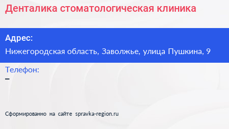 Денталика, стоматологическая клиника по адресу Нижегородская область, Заволжье, улица Пушкина, 9 в дальнейшем Организация, размещена в следующих категориях: