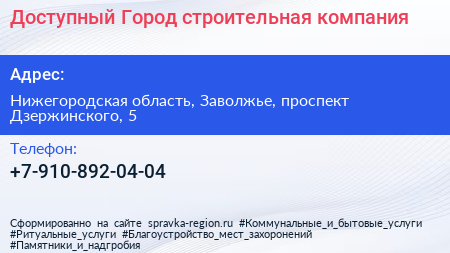 Доступный Город, строительная компания по адресу Нижегородская область, Заволжье, проспект Дзержинского, 5 в дальнейшем Организация, размещена в следующих категориях: