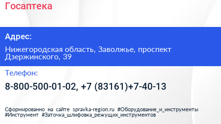 Госаптека по адресу Нижегородская область, Заволжье, проспект Дзержинского, 39 в дальнейшем Организация, размещена в следующих категориях: