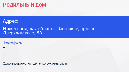 Родильный дом по адресу Нижегородская область, Заволжье, проспект Дзержинского, 58 в дальнейшем Организация, размещена в следующих категориях: