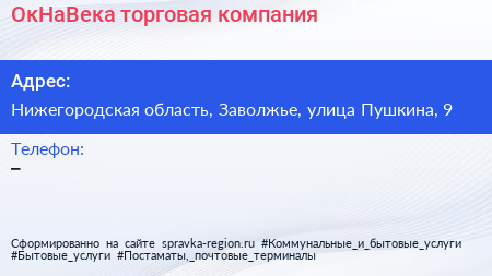 ОкНаВека, торговая компания по адресу Нижегородская область, Заволжье, улица Пушкина, 9 в дальнейшем Организация, размещена в следующих категориях: