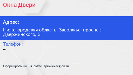 Окна, Двери по адресу Нижегородская область, Заволжье, проспект Дзержинского, 3 в дальнейшем Организация, размещена в следующих категориях: