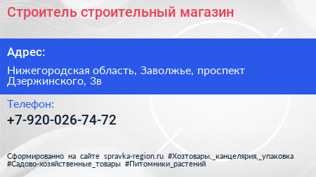Строитель, строительный магазин по адресу Нижегородская область, Заволжье, проспект Дзержинского, 3в в дальнейшем Организация, размещена в следующих категориях: