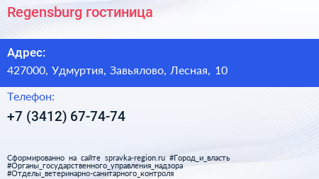 Regensburg, гостиница по адресу 427000, Удмуртия, Завьялово, Лесная, 10 в дальнейшем Организация, размещена в следующих категориях: