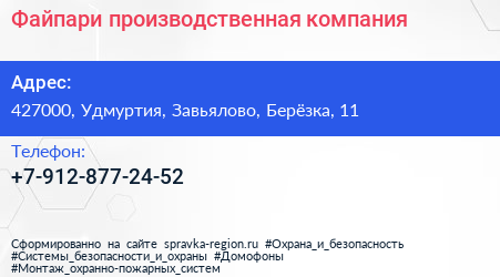 Файпари, производственная компания по адресу 427000, Удмуртия, Завьялово, Берёзка, 11 в дальнейшем Организация, размещена в следующих категориях: