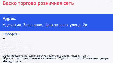 Баско, торгово-розничная сеть по адресу Удмуртия, Завьялово, Центральная улица, 2а в дальнейшем Организация, размещена в следующих категориях: