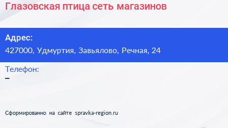 Глазовская птица, сеть магазинов по адресу 427000, Удмуртия, Завьялово, Речная, 24 в дальнейшем Организация, размещена в следующих категориях: