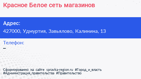 Красное & Белое, сеть магазинов по адресу 427000, Удмуртия, Завьялово, Калинина, 13 в дальнейшем Организация, размещена в следующих категориях: