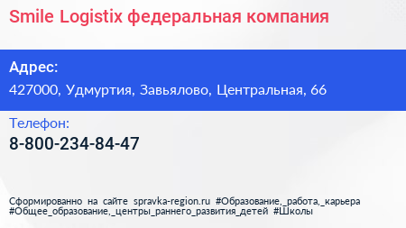 Smile Logistix, федеральная компания по адресу 427000, Удмуртия, Завьялово, Центральная, 66 в дальнейшем Организация, размещена в следующих категориях: