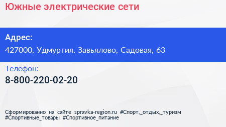 Южные электрические сети по адресу 427000, Удмуртия, Завьялово, Садовая, 63 в дальнейшем Организация, размещена в следующих категориях: