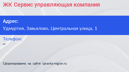 ЖК Сервис, управляющая компания по адресу Удмуртия, Завьялово, Центральная улица, 1 в дальнейшем Организация, размещена в следующих категориях:
