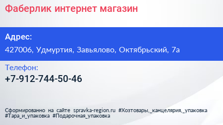 Фаберлик, интернет-магазин по адресу 427006, Удмуртия, Завьялово, Октябрьский, 7а в дальнейшем Организация, размещена в следующих категориях: