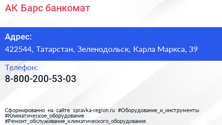 АК Барс, банкомат по адресу 422544, Татарстан, Зеленодольск, Карла Маркса, 39 в дальнейшем Организация, размещена в следующих категориях: