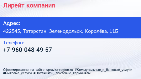 Лирейт, компания по адресу 422545, Татарстан, Зеленодольск, Королёва, 11Б в дальнейшем Организация, размещена в следующих категориях:
