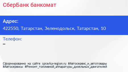 СберБанк, банкомат по адресу 422550, Татарстан, Зеленодольск, Татарстан, 10 в дальнейшем Организация, размещена в следующих категориях: