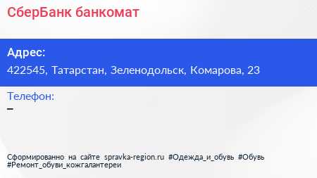 СберБанк, банкомат по адресу 422545, Татарстан, Зеленодольск, Комарова, 23 в дальнейшем Организация, размещена в следующих категориях: