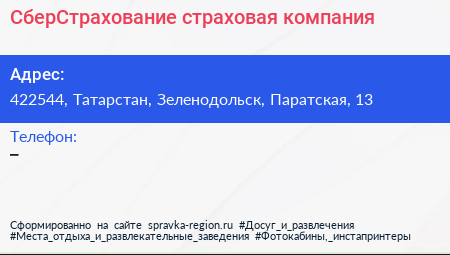 СберСтрахование, страховая компания по адресу 422544, Татарстан, Зеленодольск, Паратская, 13 в дальнейшем Организация, размещена в следующих категориях: