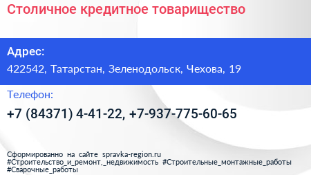 Столичное кредитное товарищество по адресу 422542, Татарстан, Зеленодольск, Чехова, 19 в дальнейшем Организация, размещена в следующих категориях: