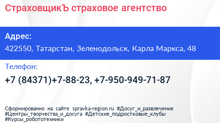 СтраховщикЪ, страховое агентство по адресу 422550, Татарстан, Зеленодольск, Карла Маркса, 48 в дальнейшем Организация, размещена в следующих категориях: