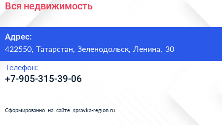 Вся недвижимость по адресу 422550, Татарстан, Зеленодольск, Ленина, 30 в дальнейшем Организация, размещена в следующих категориях:
