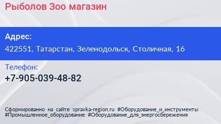 Рыболов-Зоо, магазин по адресу 422551, Татарстан, Зеленодольск, Столичная, 16 в дальнейшем Организация, размещена в следующих категориях: