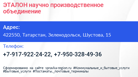 ЭТАЛОН, научно-производственное объединение по адресу 422550, Татарстан, Зеленодольск, Шустова, 15 в дальнейшем Организация, размещена в следующих категориях: