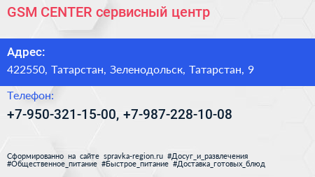GSM CENTER, сервисный центр по адресу 422550, Татарстан, Зеленодольск, Татарстан, 9 в дальнейшем Организация, размещена в следующих категориях: