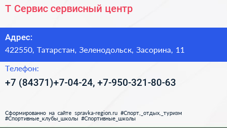 Т-Сервис, сервисный центр по адресу 422550, Татарстан, Зеленодольск, Засорина, 11 в дальнейшем Организация, размещена в следующих категориях: