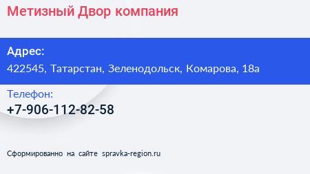 Метизный Двор, компания по адресу 422545, Татарстан, Зеленодольск, Комарова, 18а в дальнейшем Организация, размещена в следующих категориях: