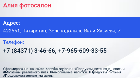 Алия, фотосалон по адресу 422551, Татарстан, Зеленодольск, Вали Хазиева, 7 в дальнейшем Организация, размещена в следующих категориях: