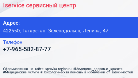 Iservice, сервисный центр по адресу 422550, Татарстан, Зеленодольск, Ленина, 47 в дальнейшем Организация, размещена в следующих категориях:
