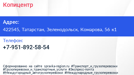Копицентр по адресу 422545, Татарстан, Зеленодольск, Комарова, 56 к1 в дальнейшем Организация, размещена в следующих категориях: