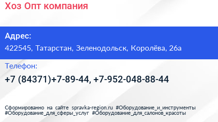Хоз Опт, компания по адресу 422545, Татарстан, Зеленодольск, Королёва, 26а в дальнейшем Организация, размещена в следующих категориях: