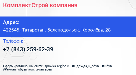КомплектСтрой, компания по адресу 422545, Татарстан, Зеленодольск, Королёва, 28 в дальнейшем Организация, размещена в следующих категориях: