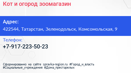 Кот и огород, зоомагазин по адресу 422544, Татарстан, Зеленодольск, Комсомольская, 9 в дальнейшем Организация, размещена в следующих категориях:
