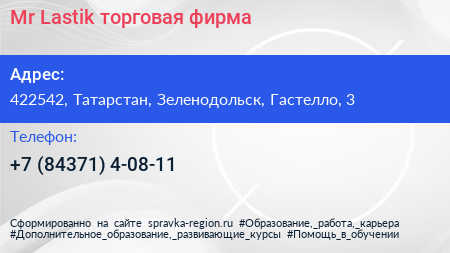 Mr.Lastik, торговая фирма по адресу 422542, Татарстан, Зеленодольск, Гастелло, 3 в дальнейшем Организация, размещена в следующих категориях: