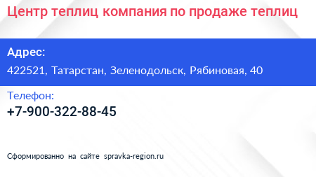 Центр теплиц, компания по продаже теплиц по адресу 422521, Татарстан, Зеленодольск, Рябиновая, 40 в дальнейшем Организация, размещена в следующих категориях: