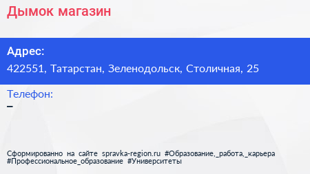 Дымок, магазин по адресу 422551, Татарстан, Зеленодольск, Столичная, 25 в дальнейшем Организация, размещена в следующих категориях: