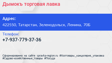 Дымокъ, торговая лавка по адресу 422550, Татарстан, Зеленодольск, Ленина, 70Б в дальнейшем Организация, размещена в следующих категориях: