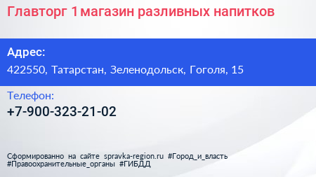 Главторг №1, магазин разливных напитков по адресу 422550, Татарстан, Зеленодольск, Гоголя, 15 в дальнейшем Организация, размещена в следующих категориях: