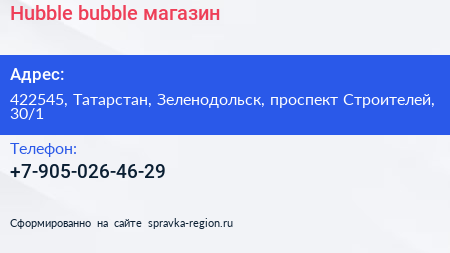 Hubble bubble, магазин по адресу 422545, Татарстан, Зеленодольск, проспект Строителей, 30/1 в дальнейшем Организация, размещена в следующих категориях: