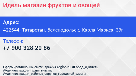Идель, магазин фруктов и овощей по адресу 422544, Татарстан, Зеленодольск, Карла Маркса, 39г в дальнейшем Организация, размещена в следующих категориях: