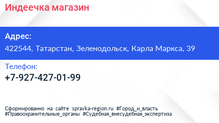 Индеечка, магазин по адресу 422544, Татарстан, Зеленодольск, Карла Маркса, 39 в дальнейшем Организация, размещена в следующих категориях: