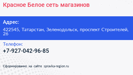Красное & Белое, сеть магазинов по адресу 422545, Татарстан, Зеленодольск, проспект Строителей, 26 в дальнейшем Организация, размещена в следующих категориях: