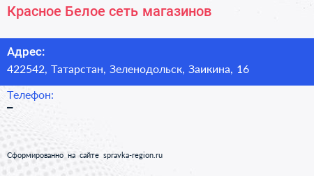 Красное & Белое, сеть магазинов по адресу 422542, Татарстан, Зеленодольск, Заикина, 16 в дальнейшем Организация, размещена в следующих категориях: