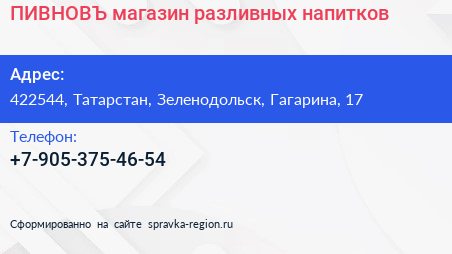 ПИВНОВЪ, магазин разливных напитков по адресу 422544, Татарстан, Зеленодольск, Гагарина, 17 в дальнейшем Организация, размещена в следующих категориях: