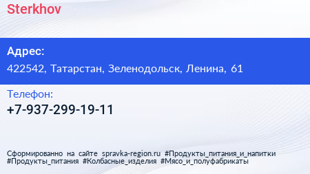 Sterkhov по адресу 422542, Татарстан, Зеленодольск, Ленина, 61 в дальнейшем Организация, размещена в следующих категориях: